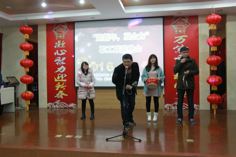 歌曲《嘉名之歌》、三句半《賀2016新年》、千葉玉玲瓏花茶茶藝表演、舞蹈《CRY CRY》、詩朗誦《不屈的脊梁》、……表達(dá)職工心聲的歌曲、展現(xiàn)職工風(fēng)采的舞蹈、充滿青春活力的各類表演節(jié)目,“猜猜看”、“綁腿接力賽”、“轉(zhuǎn)圈前進(jìn)”、“摸石過河”……等趣味互動游戲和《工會法》、《勞動合同法》、《安全生產(chǎn)法》等法規(guī)知識題搶答,還有“新年溫暖獎”、“新年快樂獎”、“新年幸福獎”抽獎活動的創(chuàng)意組合,讓現(xiàn)場高潮迭起。12月29日晚,由鳳鳴街道工會主辦,“嘉名控股”、“新東方油墨”、“豪庭燈飾”、“方圓聚合纖”承辦的“迎新年,凝合力”職工聯(lián)誼晚會在嘉名員工公寓區(qū)活動樓多功能廳精彩上演。